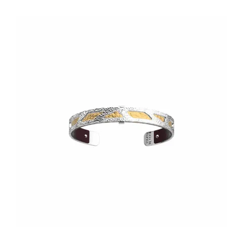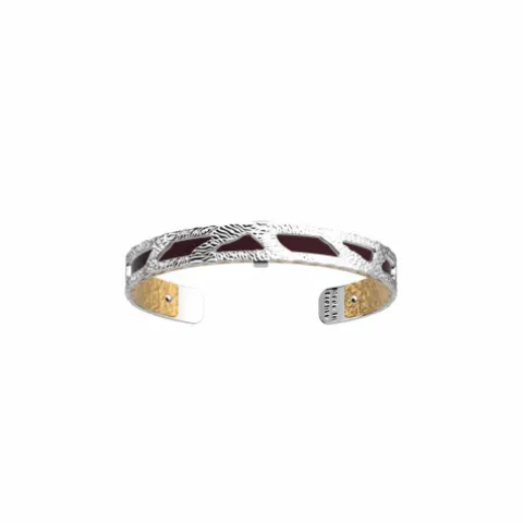 Esta pulsera Nomade de 8 mm de ancho y acabado plateado se combina con un inserto de cuero reversible Gazelle / Plum Sparkle, para que puedas cambiar el color de tu joya