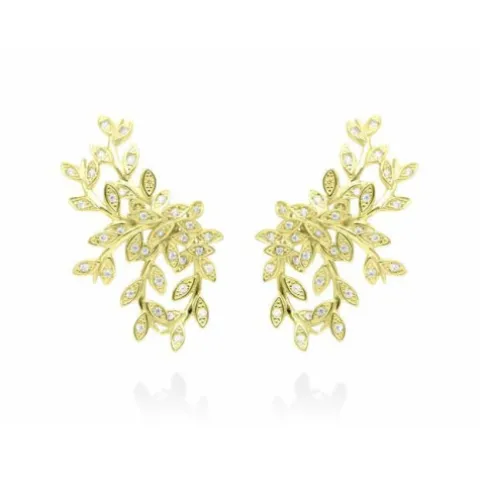 Pendientes de plata de primera ley (925) chapada en oro amarillo de 18kt con circonita blanca. (tamaño: 4 x 2,5 cm.)