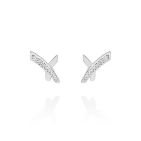 Pendiente de diseño abstracto y contemporáneo en plata de primera ley (925) con baño de rodio y circonita blanca. Tamañp: 20 x 15 mm.