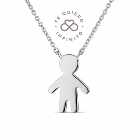 Colgante silueta de niño hecho en plata de 1ª Ley, con cadena. Posibilidad de personalizar.Tamño del colgante: 20mm alturaLargo del collar: 38cm más 5cm alargador.