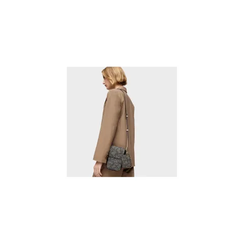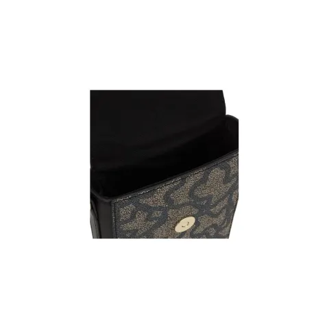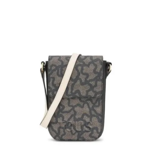 Funda de móvil colgante Kaos Icon de lona con detalles de piel sintética en color negro. Cierre de botón magnético. Tiene dos ranuras para tarjetas, una de ellas transparente. Asa bandolera ajustable. Medidas (alto x ancho x fondo): 19 x 13,5 x 4 cm.