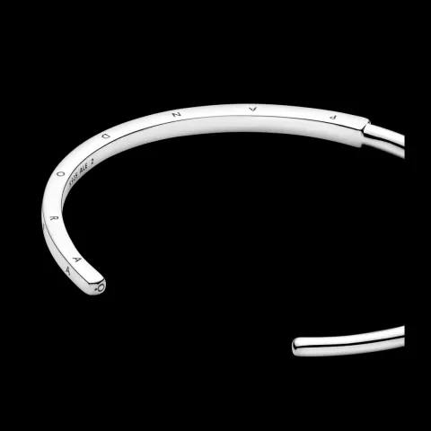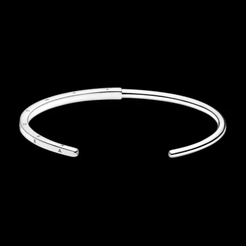 Eleva el tono de tu look con la Pulsera Rígida Pandora Signature I-D. Esta pulsera rígida, con un perfil semi-cuadrado y semi-redondo, se presenta acabada a mano en plata de primera ley. El perfil redondo pulido de la pulsera cambia en el centro a un perfil cuadrado de mayor tamaño cuyos tres laterales exteriores se han decorado con el logo de Pandora. Cada extremo de la pulsera rígida se ha embellecido con el monograma de la corona de la O de Pandora. La pulsera rígida ofrece un tamaño preciso que facilita un ajuste perfecto y no se ha diseñado para que sea necesario doblarla ni girarla al quitarl