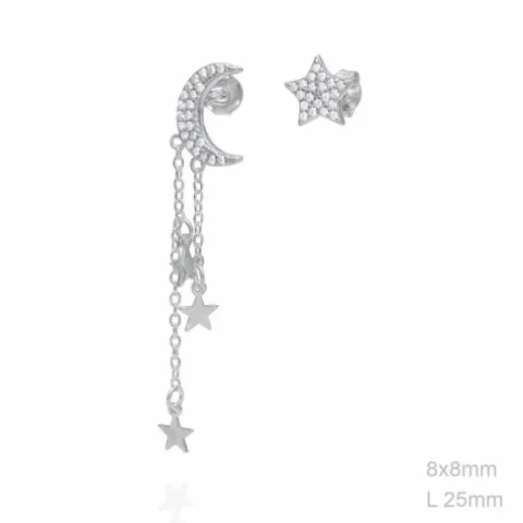 Pendientes en plata de ley decorados con circonitas. Estrella y Luna asimetría de símbolos que hará tu look poderoso y actual