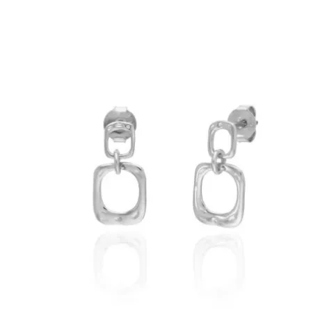 Pendientes en plata de ley doble cuadrado. Geometría contemporánea que aporta valor a tus looks cada día para cualquier ocasión