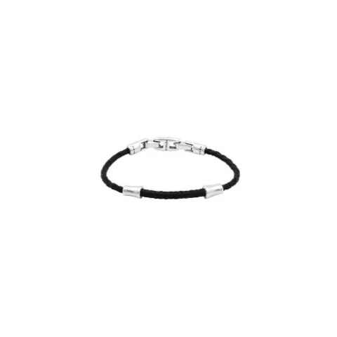 Pulsera de cuero Dekel de la Colección Man de Ciclón 1998. Diseño con adornos bañados en plata montados sobre cuero de 3 mm en los extremos y 5 mm en el centro. Disponible en 2 colores y 2 tallas regulables. Cierre de pato