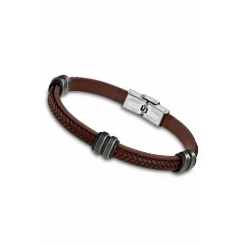 Pulsera de hombre de la colección Urban de Lotus. Hecha en cuero trenzado color marrón sobre cuero liso marrón. Cierre y adornos en acero. Medida; 22cm
