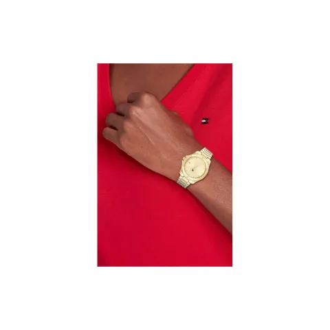 Tommy Hifiger Brooke en acero bañado en oro . La vida es una fiesta , vive la tuya con tu estilo único. Inspirado en el estilo Preppy inconfiundible eleva tu estilo a otro nivel en este complemento top para tu look