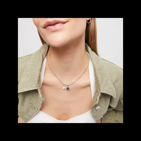 Uno de 50 Colalr Esferas con charms perla y gota con cristal azul lady talla brillante