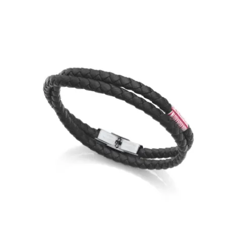 Pulsera Viceroy Air de acero de piel con doble vuelta en color negra y detalle de cordon en color rojo y blanco, largo 21.5 cm.